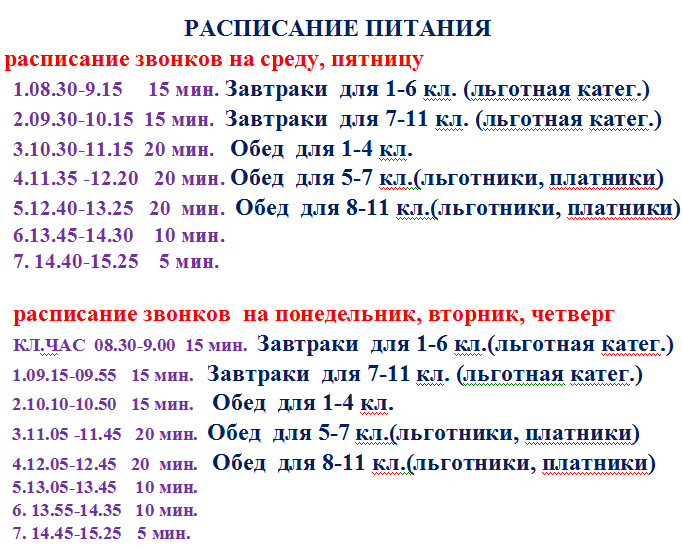 2. Расписание занятий должно предусматривать перерыв достаточной продолжительности для питания обучающихся.